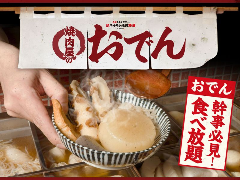 この度、「0秒レモンサワー®仙台ホルモン焼肉酒場 ときわ亭」の溝の口店、武蔵小杉店、柏東口店、高槻店、仙台駅前店限定で、3月1日(金)より、おでんコーナーを設け、「おでん食べ放題」を提供開始いたします。ネタは、大根、玉子、はんぺん、ちくわ、さつま揚げ、厚揚げ、結び白滝、こんにゃく、肉団子、豚しゃぶの王道ネタ10種。「おでん食べ放題」を550円(税込)で提供するほか、宴会コースご利用の方は、追加料金なしで「おでん食べ放題」がお楽しみいただけます。歓送迎会シーズンに向けて宴会需要の取り込みを図ります。