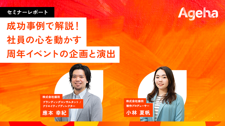 コーポレートブランディング支援を行う株式会社揚羽(東京都中央区 代表取締役社長:湊 剛宏 証券コード:9330)は、2026年2月26日(木)に開催したセミナー「成功事例で解説!社員の心を動かす周年イベントの企画と演出」のレポート記事を公開しました。