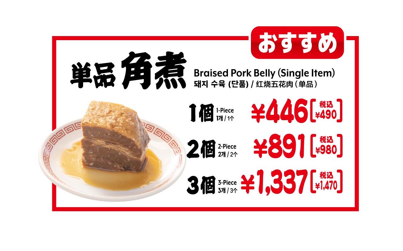 期間限定で、人気の「おつまみチャーシュー」が30円引き。角煮ラーメンとあわせて、さらに満足度アップ。