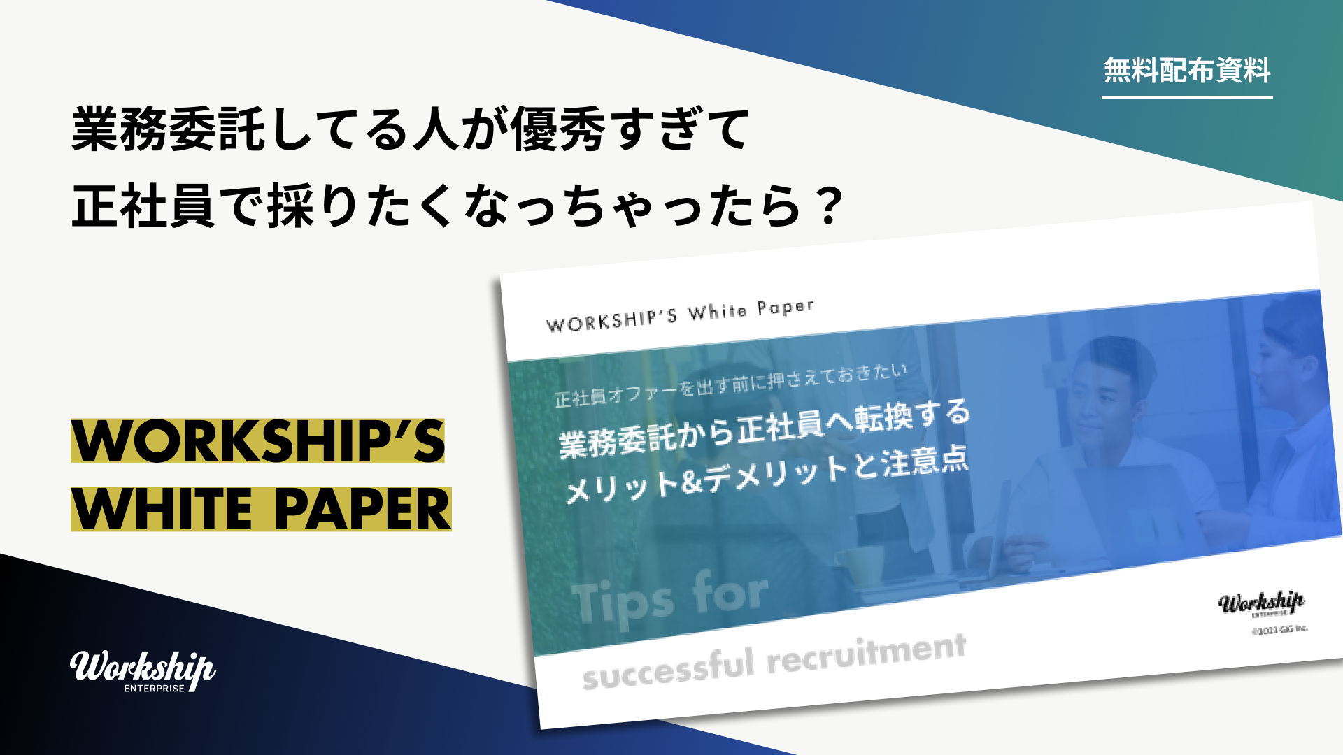 無料配布資料「業務委託から正社員へ転換する メリット&デメリットと注意点」の提供を開始しました!【Workship】