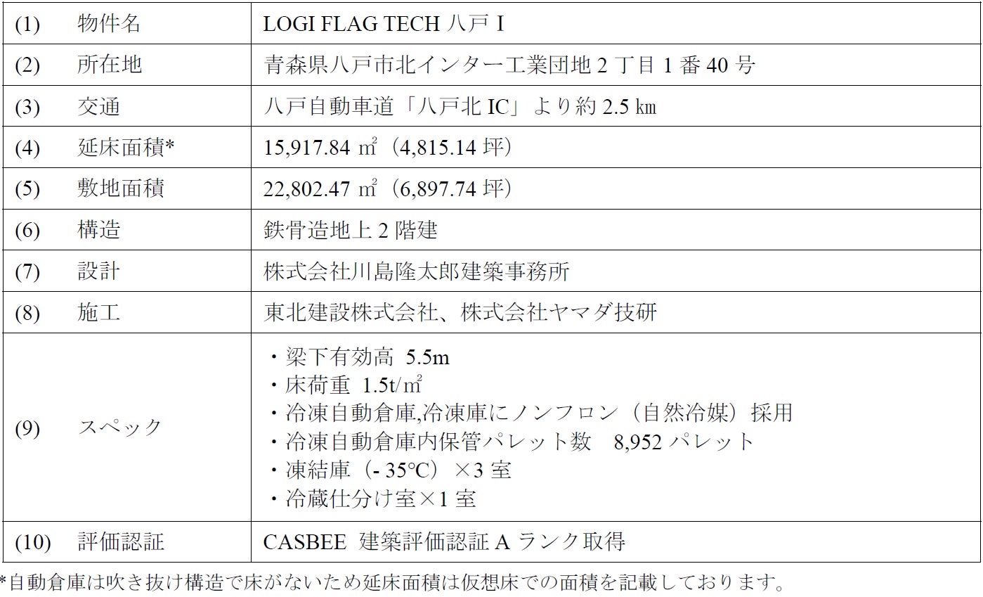 賃貸型冷凍自動倉庫『LOGI FLAG TECH 八戸Ⅰ』竣工に関するお知らせ