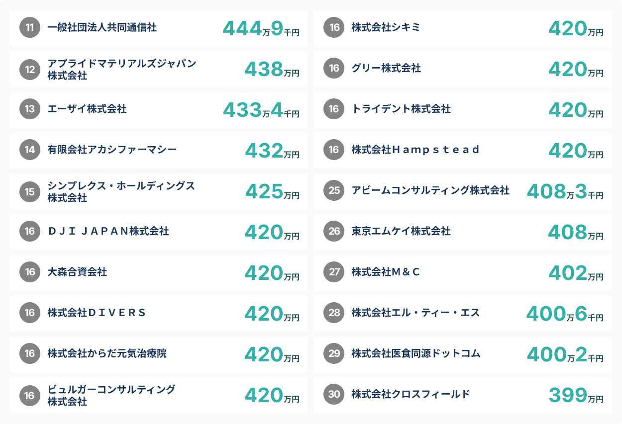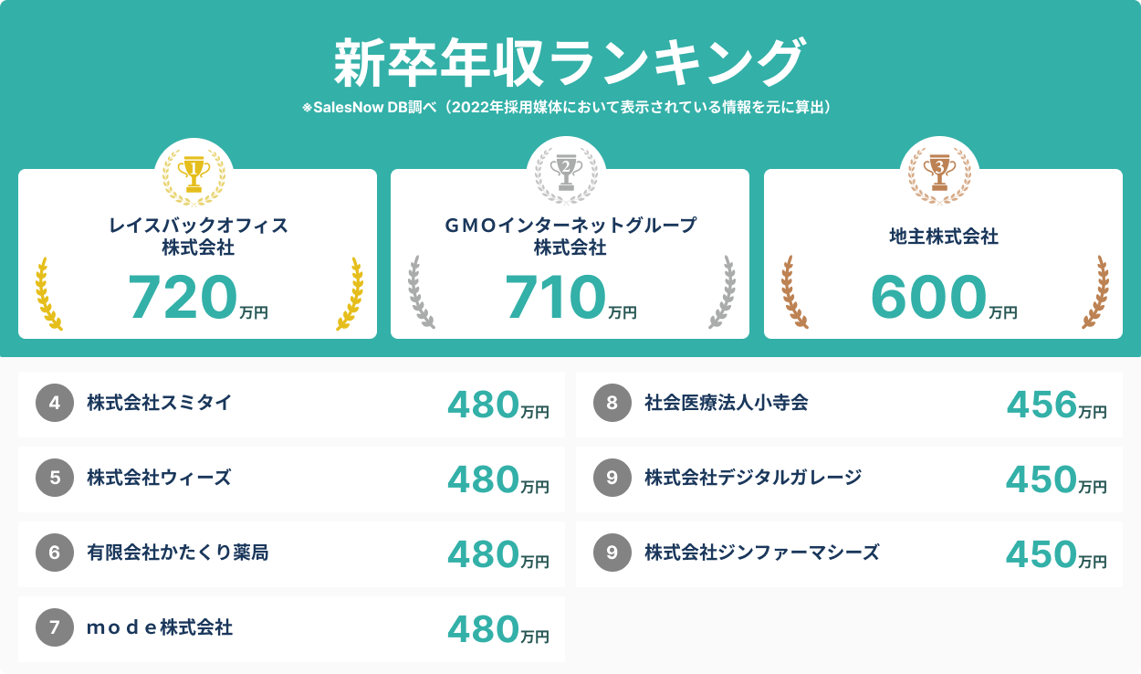1位はあの企業に!?初任給が高い「新卒年収ランキングTOP30」/SalesNow DBレポート