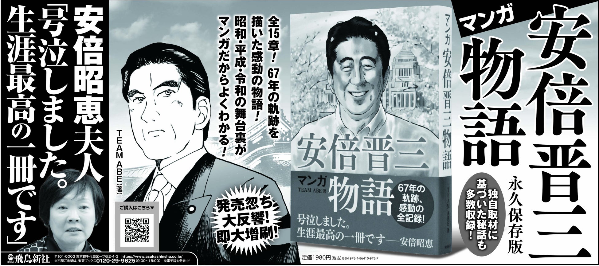 安倍昭恵夫人が「号泣。生涯最高の一冊」と絶賛した『マンガ安倍晋三物語』が4刷と話題!