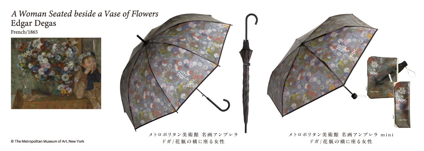 美術好きが憧れる世界最大級の美術館”メトロポリタン美術館”とWpc.が初コラボレーション。世界屈指のコレクションを誇る所蔵品の中から、フィンセント・ファン・ゴッホ、クロード・モネ、オーギュスト・ルノワール、エドガー・ドガの4名の画家から花瓶をモチーフにした名画をセレクトし、『恵みの雨で花開く―メトロポリタン美術館の名画とともにはかなくも美しい空間を―』をテーマにした5種類のビニール傘が完成しました。