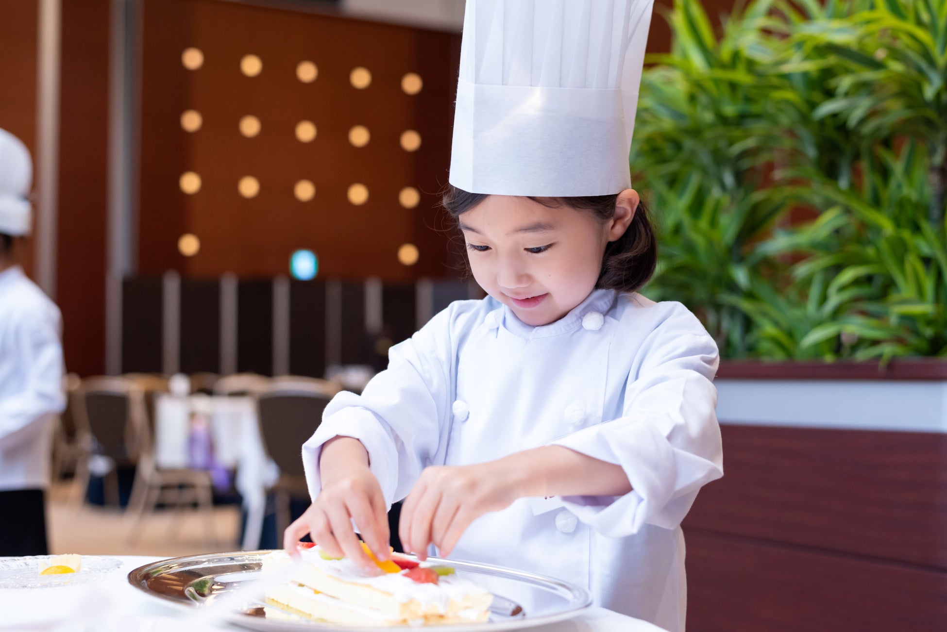 講師を務めるのは、当ホテルのスイーツを監修するシェフ ド パティシエ 長島健二。ご参加いただくお子様にはコックコートとコック帽をご着用のうえ、シェフ ド パティシエ指導のもとスポンジ生地を作る工程やデコレーションなどを体験しながら、フルーツショートケーキ作りにチャレンジしていただきます。お作りになったケーキはティータイムでお飲み物とともにお召し上がりいただきます。(お持ち帰りも可能)イベントの最後には「キッズシェフ認定書」をお子様へ授与いたします。