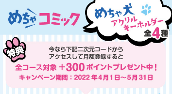 - 景品ゲット&月額登録で「めちゃコミック」300ポイントがもらえるキャンペーン
