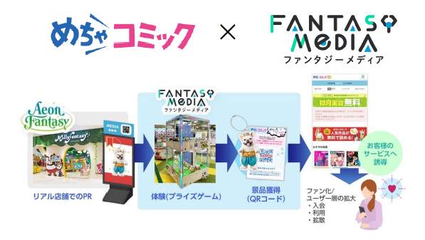 本取り組みは、当社がSBクリエイティブ株式会社と運営する「ファンタジーメディア」を活用したものです(協力企業:ソフトバンク株式会社)。「ファンタジーメディア」は店舗入口、店内、プライズゲームに設置したデジタルサイネージディスプレイや連携するQRコードを使い、ユーザーにアプローチ出来る体験型のアドバタイジングメディアです。
