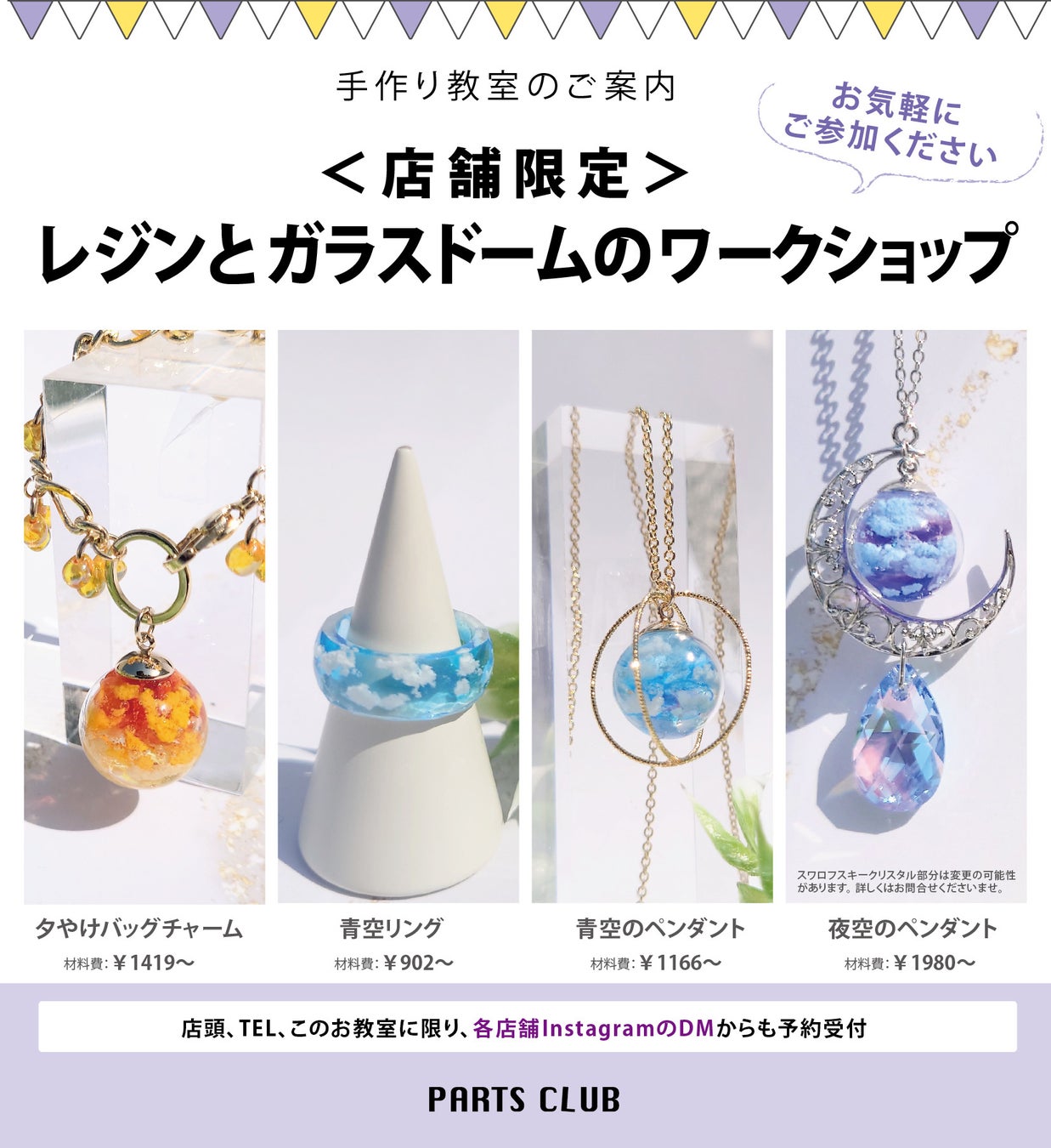 美しい夏空の思い出を閉じ込めよう! PARTS CLUB では、人気の雲レジンが作れる「手作り教室」を開催