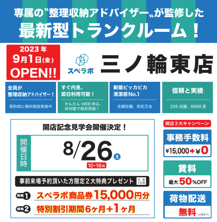 【三ノ輪東店/9月1日(金)オープン】見学から契約、解約まで完全非接触・非対面、お申し込みからご利用まで最短1時間!都内、大阪などにて絶賛運営中のトランクルーム【スペラボ】が三ノ輪駅近くに出店!