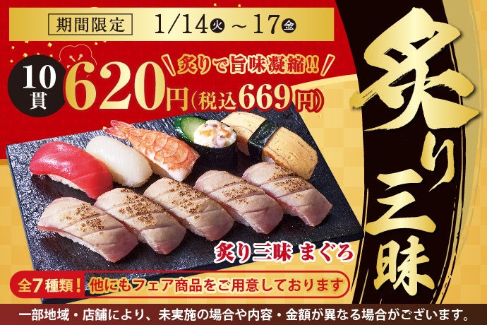 KOZOホールディングス株式会社の子会社である株式会社小僧寿しは、持ち帰りすし店「小僧寿し」にて、2025年1月14日(火)~17日(金)の期間限定で「炙り三昧フェア」を開催します。