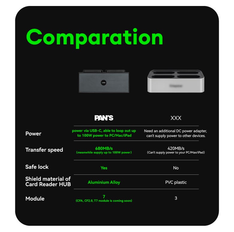 【新発売】Pan'sメディアデートセンター、USB A+USB C+デュアルUHS-II SD+デュアルUHS-II Micro SDカード+Cfexpress type-Bカードなど同時に対応でき