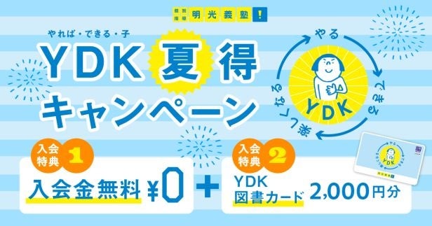 明光義塾公式Webサイトからお問い合わせのうえ、入会された方全員に「入会金無料」と「YDK図書カード2,000円分」をプレゼント。子どもたちが夏の学習を通して「やればできる」を実感し、自信を持って夏休み明けの2学期を迎えられるよう応援します。詳しくはお近くの教室までお問い合わせください。