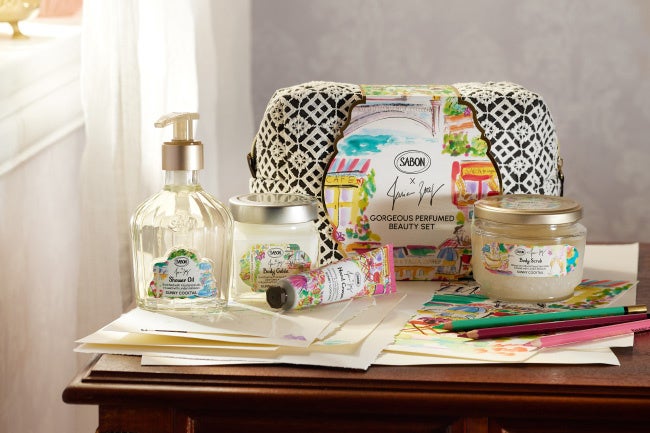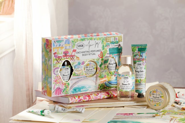 今回のコラボレーションでは、パッケージやギフトボックスに、パリのエッセンスとSABONの世界観を組み合わせたオリジナルイラストを提供。