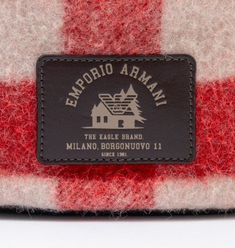 レッドカラーはコレクションのキーカラーとして印象的に使われています。山小屋に置かれる暖かなブランケットをイメージさせるようなブロックチェック柄は、このカプセルコレクションの中でもひと際大きな存在感を放ちます。