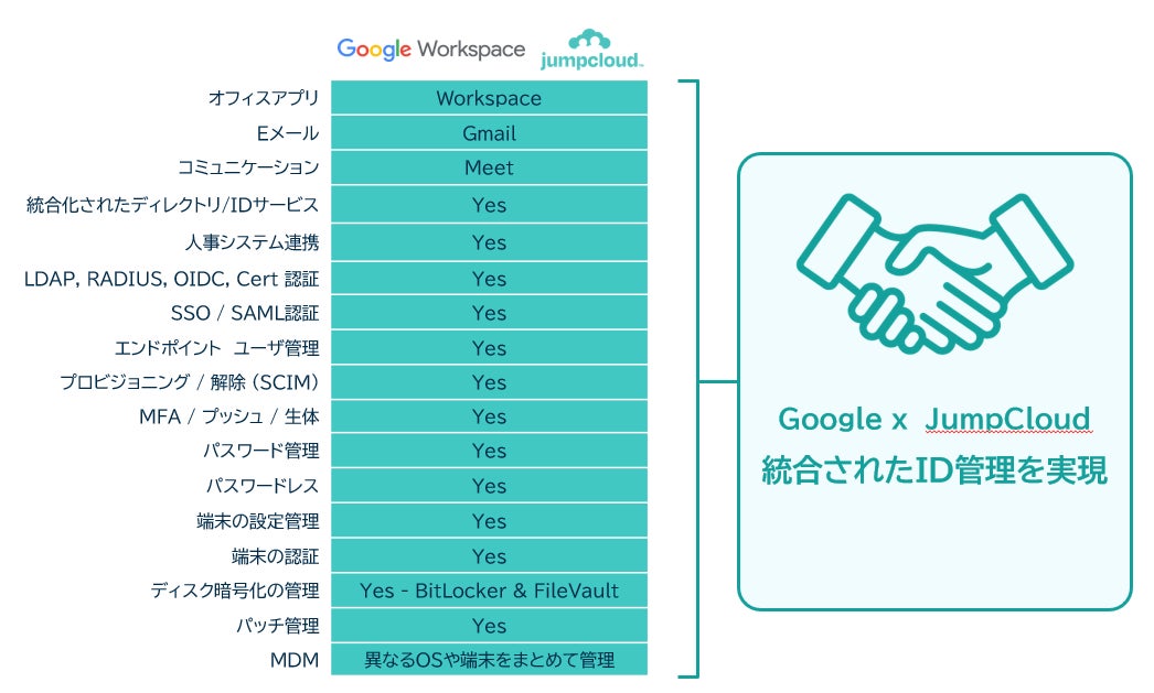 企業のIT管理を抜本的に変える革新が、IDおよびデバイス管理プラットフォーム「JumpCloud」と「Google Workspace」の統合で実現します。完全クラウドベースのIT運用&生産性向上ソリューションで、IT人材不足や煩雑な管理業務に悩む企業に向けて、“1クリック管理”の未来が現実になります。