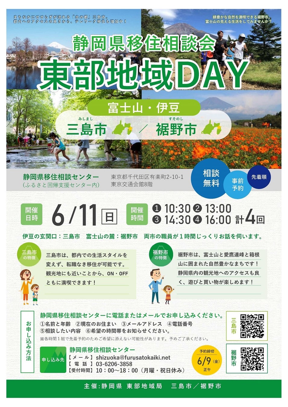 移住相談会 静岡県東部地域DAY(三島市・裾野市)を、東京・有楽町で6月11日に開催