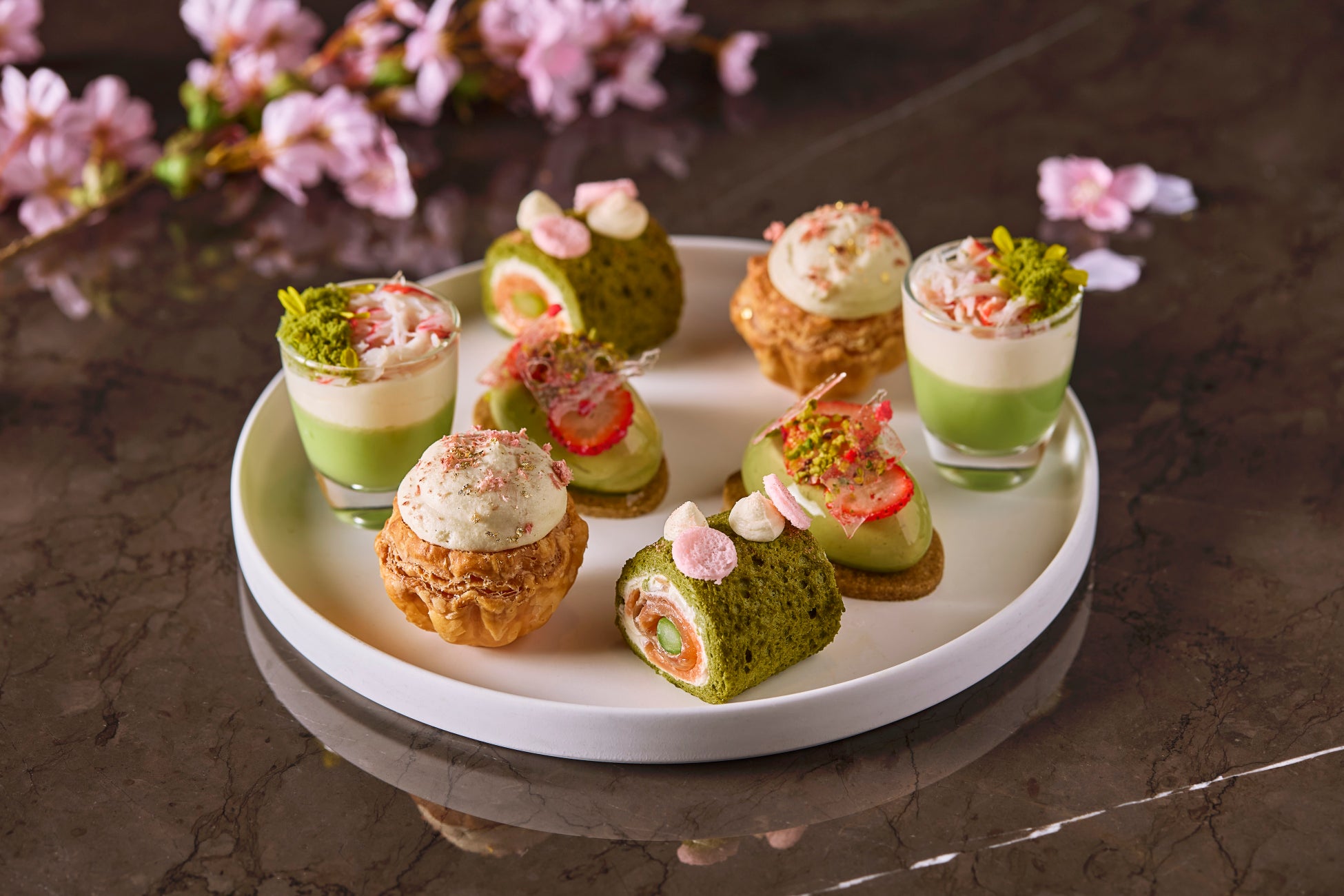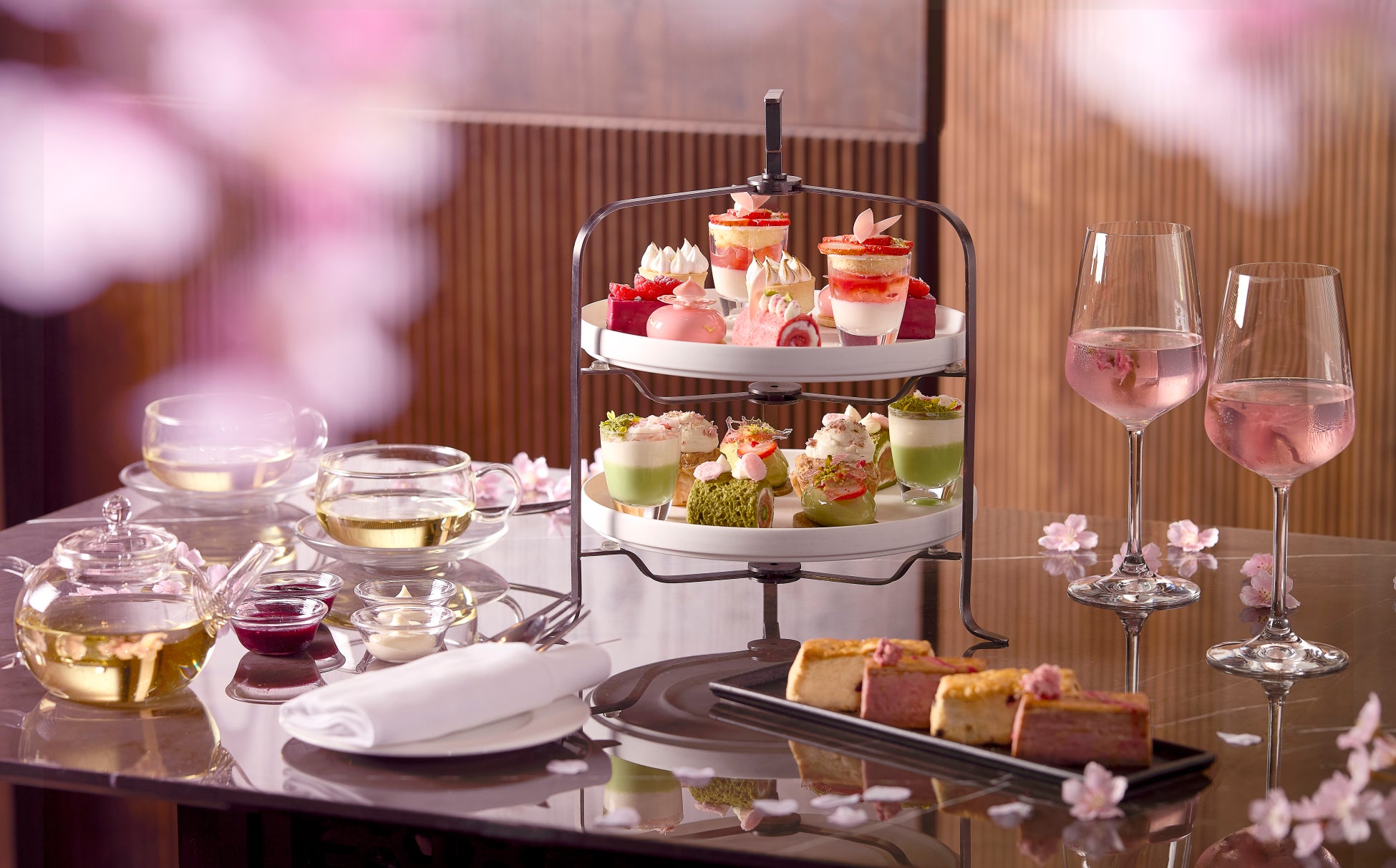 庭園に咲き誇る満開の桜を愛でながら、フォーシーズン ズならではの優雅なお花見ティータイムを。桜、柚子、 抹茶、いちごなど、和の香りが広がるスイーツ 5種と、季節 の恵みを活かしたセイボリー 4 種をお重に美しく詰めて ご用意いたします。春の風情に包まれる贅沢なひとときをお楽しみください。