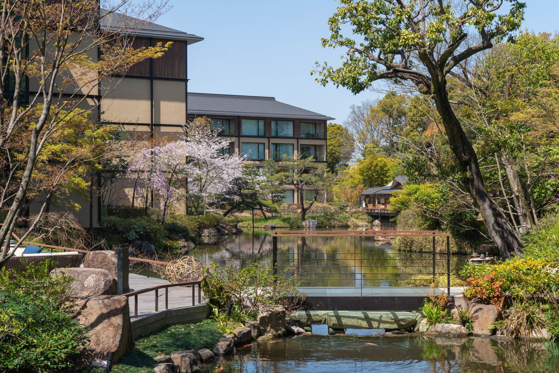 この庭園を囲むように並ぶホテル館内は、ハーシュ・ベドナー・アソシエイツがデザインを担当する123室の客室とスイート、57室のホテルレジデンスを有し、ゆとりあるスペースを確保。スタイリッシュでありながらも和のエッセンスを秘めた空間が安らぎのひとときを与えてくれます。また、フランス料理をベースとしたモダンキュイジーヌをお楽しみいただけるレストラン「ブラッスリー」、江戸前鮨を提供する「鮨 和魂」、淹れたてのハンドドリップコーヒーやホテル特製のペストリー、スイーツ、夜はオリジナルカクテルが味わえる「ザ・ラウンジ&バー」をご用意しております。庭園の対岸にある数寄屋造りの茶室「積翠亭」では、日中は抹茶などを使用したスイーツ、夕暮れ時からはライトアップされた庭園を目前に日本酒やシャンパンをお楽しみいただけます。さらにはリゾート気分を満喫できるプールやフィットネス、スパも完備。自然光が差し込むチャペル、そして最大360名の宴会を開催することができるボールルームなどの宴会場施設は、婚礼から会議、各種レセプションまで、用途に応じてご利用いただけるスタイリッシュな空間です。