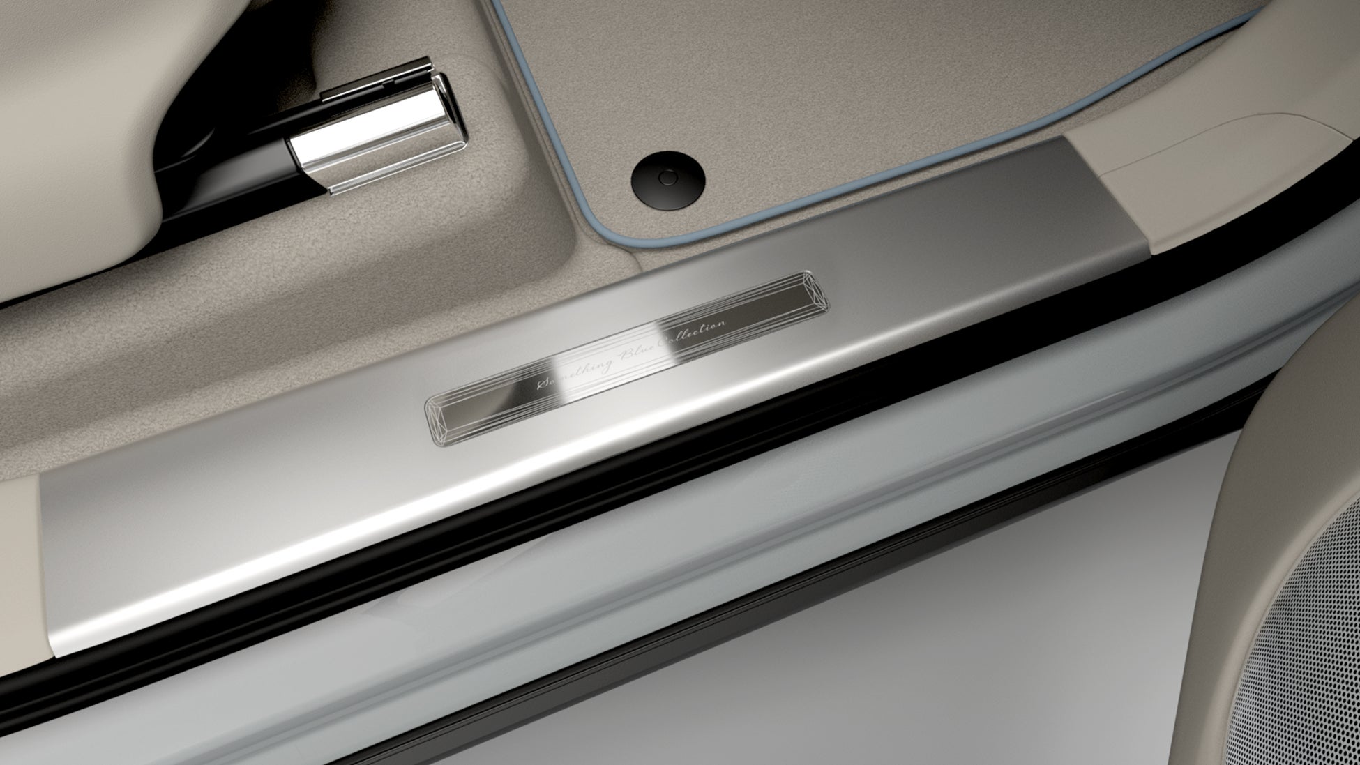 加えて、サテンとクロームで仕上げた「Something Blue Collection」専用トレッドプレートには、ブルーダイヤモンドのラウンドブリリアントカットを想起させるデザインを採用。足元にさりげない輝きと特別感を添え、乗り込む瞬間から唯一無二の一台であることを印象づけます。