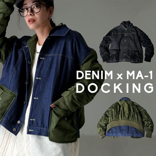 フロントは起毛感あるチェック柄。袖は大人気MA-1のドッキングデザイン。ゆるっとしたシルエットはこなれ感も。