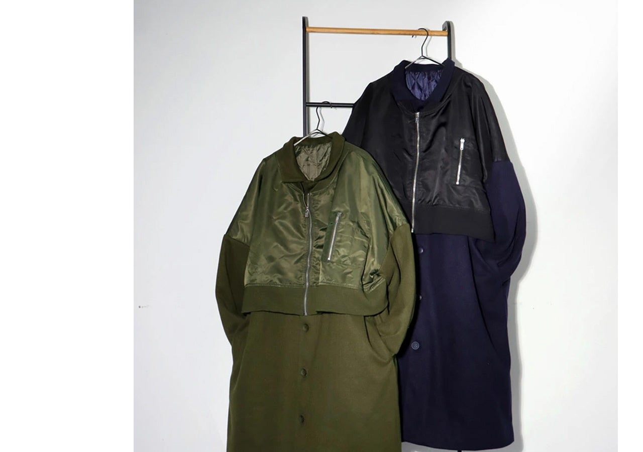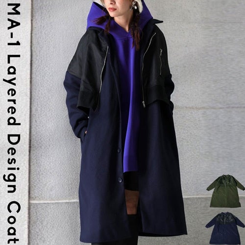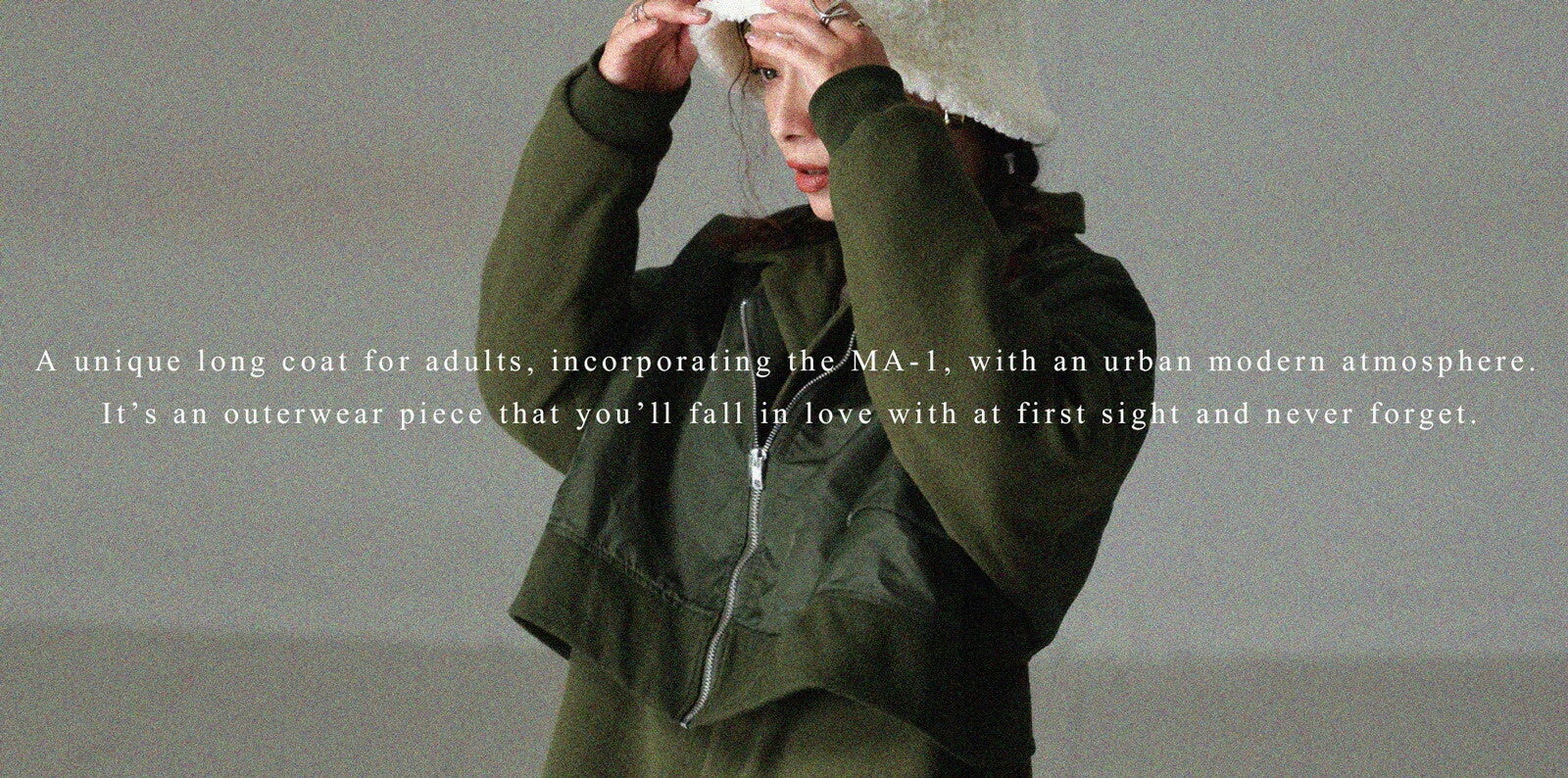 クラシカルな雰囲気醸すロングコーに、MA-1をレイヤードしているかのようなデザインが、個性光る唯一無二の主役級のアイテム。ラフに着てもお洒落に見えるのはこのデザインだから。