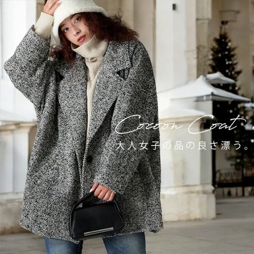 やや丸みのあるコクーンシルエットが大人可愛い、最旬コートが登場。大きすぎず小さすぎない絶妙なサイズ感で、どんなコーデにも合わせやすい。