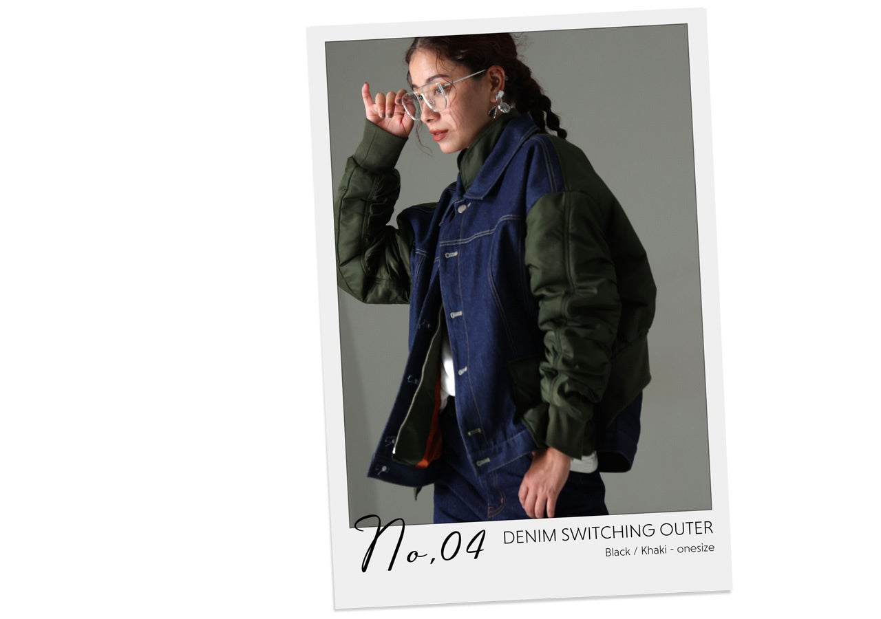 細部まで拘りたっぷり詰まったデニム切り替えアウター。着こむほどに馴染むデニムは程よくしっかりとした厚みがありつつも柔らかい質感。後ろ姿もぬかりなく、まるでレイヤードスタイル。