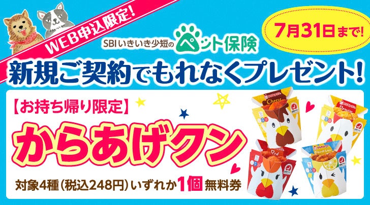 【SBIいきいき少短】ペット保険のWEB申込で「からあげクン」をプレゼント!