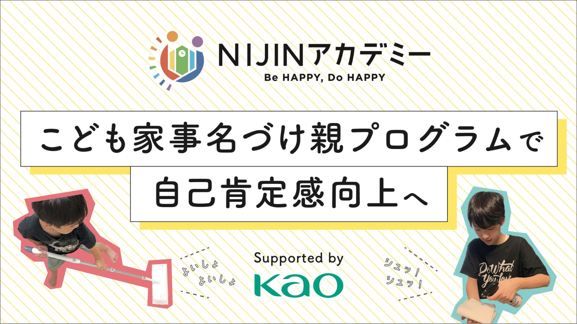 株式会社NIJIN(本社:東京都江東区、代表取締役:星野達郎、以下NIJINアカデミー)は、花王株式会社(所在地:東京都中央区、以下花王)と「こども家事名づけ親プログラム」を通して自己肯定感向上を目指す取り組みを開始したことをお知らせします。