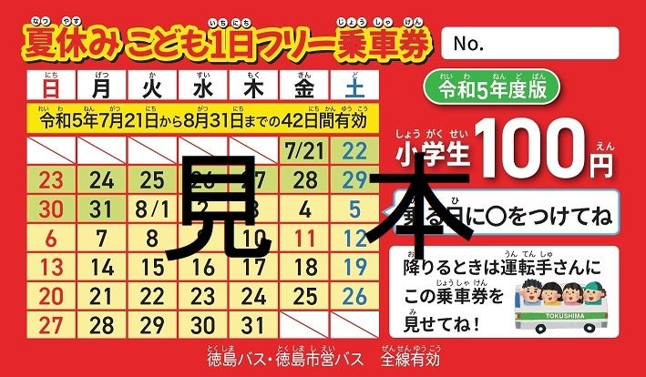 令和5年度「夏休みこども1日フリー乗車券」の販売について