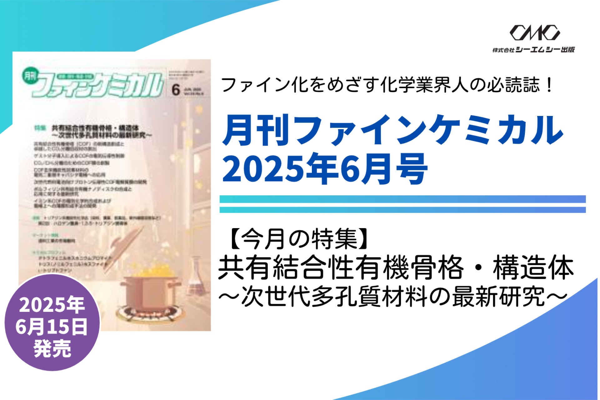 株式会社シーエムシー出版(本社:東京都千代田区神田錦町1-17-1、代表取締役:金森洋平)は、 雑誌『月刊ファインケミカル2025年6月号』(定価:税込7,700円)を、2025年6月15日に発売いたします。 本誌は当社ECサイトおよび全国の書店にてご購入いただけます。