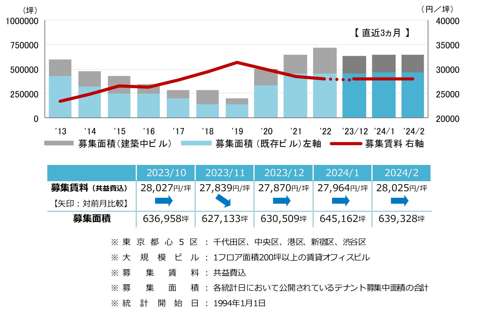 東京都心5区 大規模ビル 募集賃料&募集面積