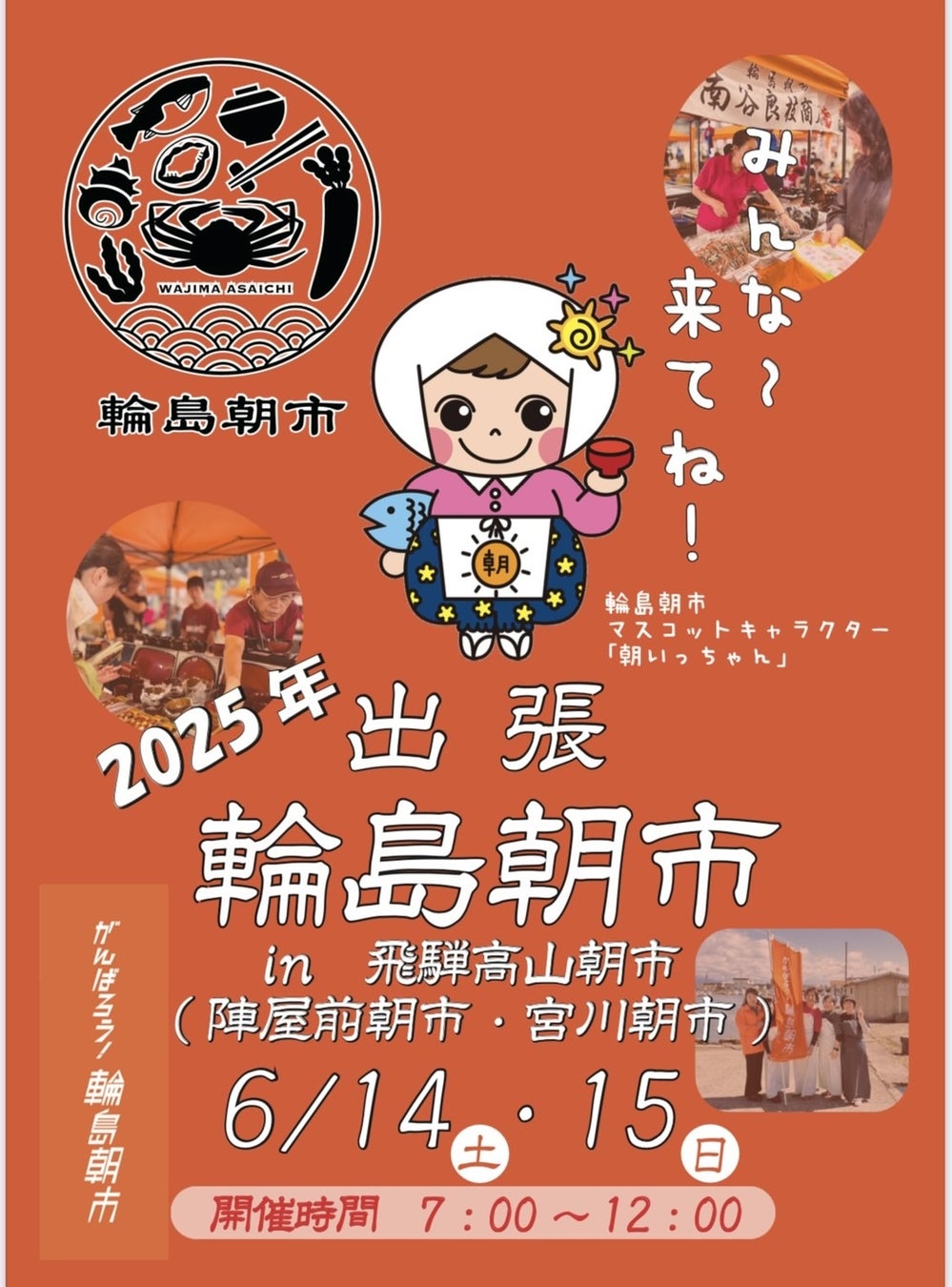 このたび、令和6年能登半島地震により大きな被害を受けた輪島市朝市を支援するため、「出張輪島朝市」を高山市の陣屋前朝市および宮川朝市で開催します。本イベントでは、輪島の出店者が実際に高山を訪れ、特産品や工芸品の販売を行うほか、現地の魅力を直接発信します。