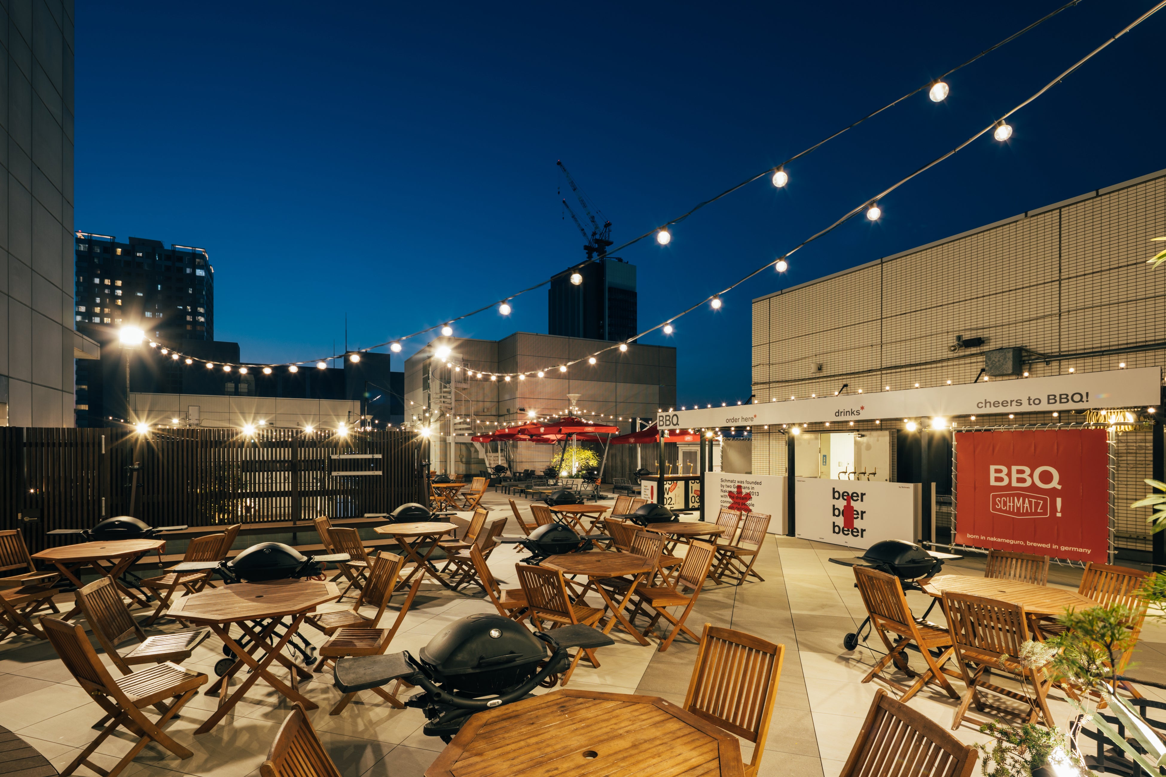 本格的なBBQグリルとウッドテーブルを備え、都会の中心にいながら開放的で非日常感のある空間を演出。BBQグリルで焼き上げるオリジナルソーセージや肉料理と、ドイツ直輸入のSchmatzオリジナルクラフトビールとの相性も魅力です。さらに、昨年好評を博したセルフサーバーを今年も設置。Schmatzでしか味わえない最高のビール体験とBBQで今年の夏をプロースト(乾杯)しましょう!
