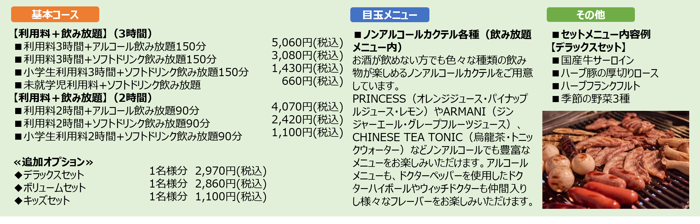 ※食べ放題およびドリンクラストオーダー:コース終了時刻