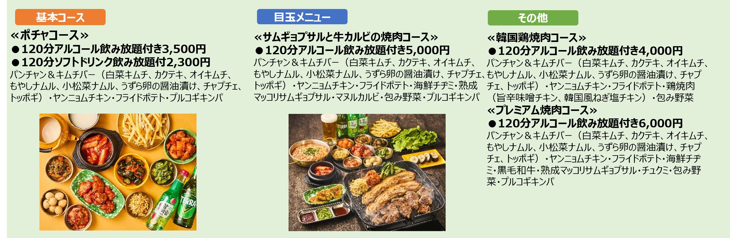 ・全コースで楽しめる!本格的な韓国総菜「パンチャン」&「キムチバー」が食べ放題