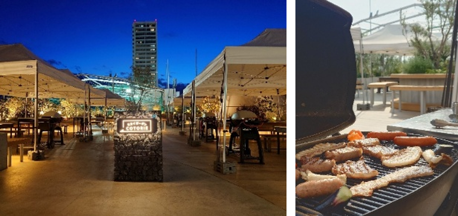 ルミネ立川の屋上庭園『SKY GARDEN COTORIE』に隣接し、きれいに手入れされた植栽を楽しみながら本格的な広々としたサイトでBBQを楽しめるBBQ施設です。飲み放題メニューに含まれるノンアルコールカクテルもさらに充実し、食材は手軽に楽しめるセットメニューか、館内の食品フロアでお好きな食材を購入するか選択可能です。