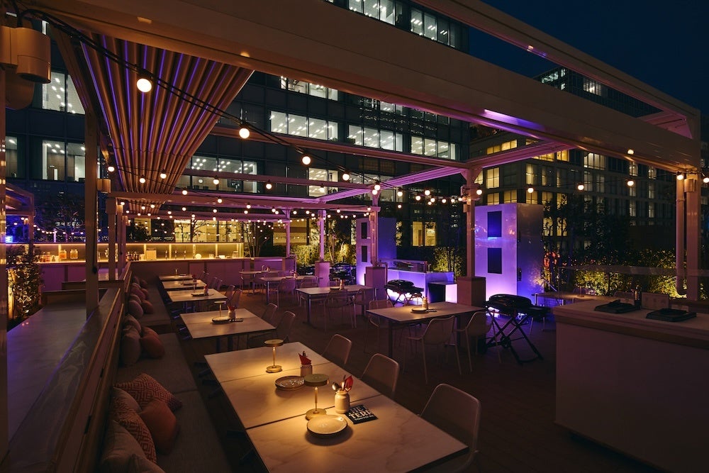 TOKYO‘S BEER GARDEN「THE MED TERRACE」では、地中海スタイルの料理を心地よい風と都会の景色に包まれながらお楽しみいただけます。空間を彩る音楽とともに、BBQをはじめとする料理や、多彩なラインナップを取り揃えたバーカウンターでつくるオリジナルカクテル、そして都会の開放感が交わる特別なひとときをご体感いただけます。