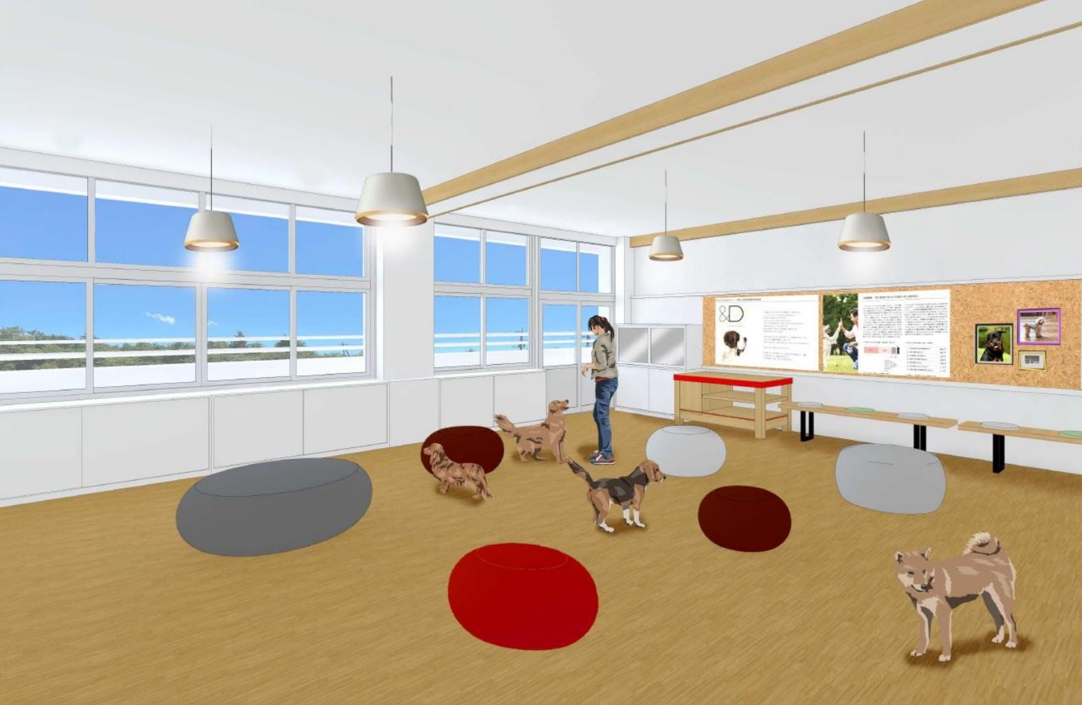 その実現のひとつが&HAUSです。&HAUSは、動物保護領域での最新研究分野のひとつである「シェルターメディスン」の考え方に基づいた施設で、文部科学省の廃校施設の有効活用プロジェクトの一環として、茨城県笠間市の廃校を改装したものです。「&D」のパートナーの方が、万が一、飼育する犬と暮らせなくなった場合に、自然あふれる笠間で、愛犬たちに快適な生活環境を提供します。