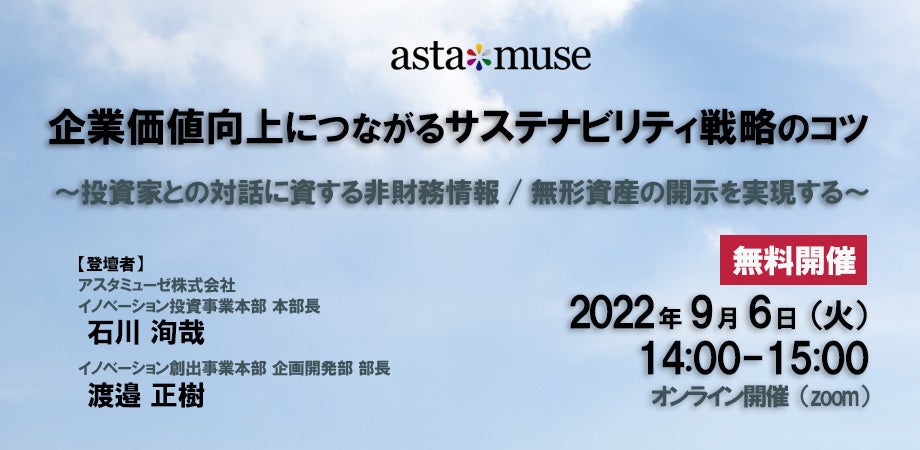 経営者・経営企画部向け無料ウェビナー「企業価値向上につながるサステナビリティ戦略のコツ ~投資家との対話に資する非財務情報 / 無形資産の開示を実現する~」を開催