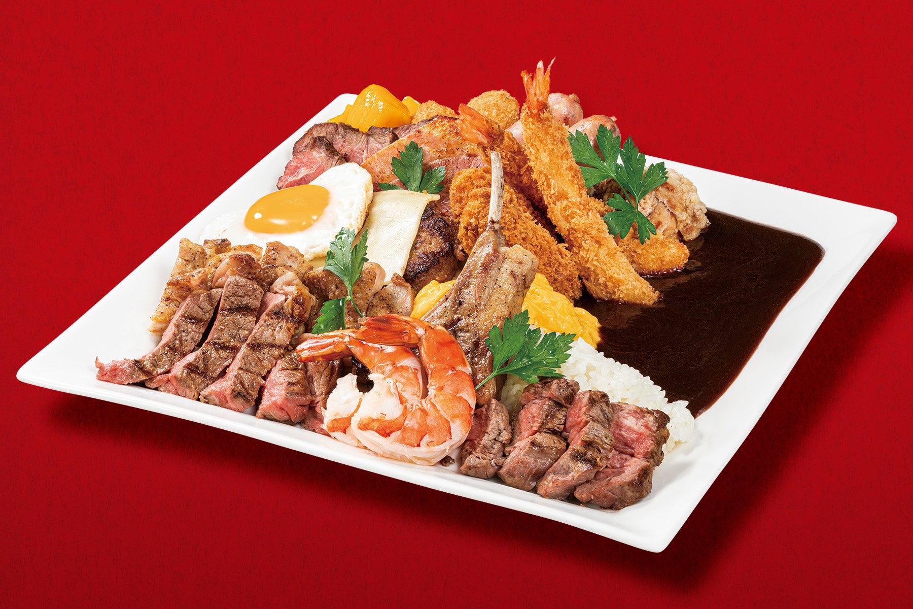 総重量1.5kg超の「全部のせカレー」もご用意しました。専用の大皿をご用意してご注文をお待ちしております。3名様以内でのシェアが可能な1品ですので、ご家族やご友人と一緒にお楽しみいただけます。