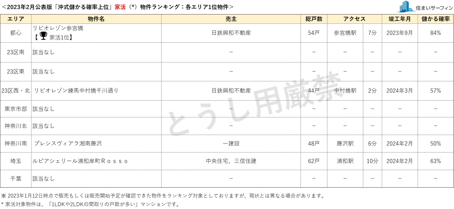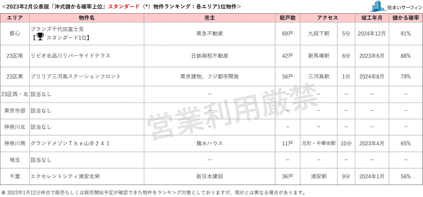 2月公表分は、2023年1月12日時点で販売もしくは販売予定が確認できた物件を対象としています。