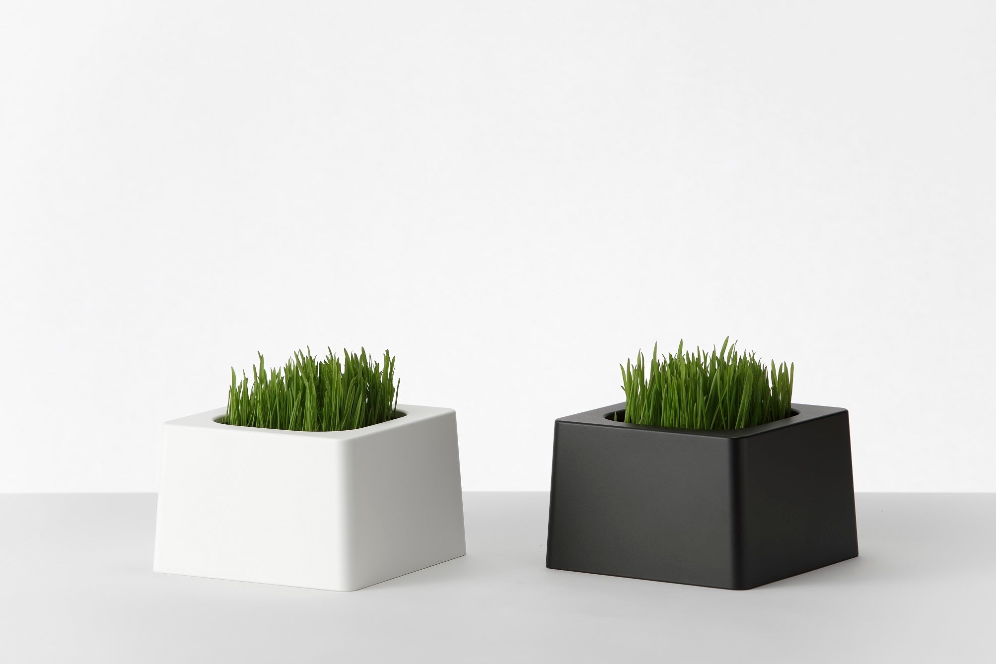 ペットグラス専用の鉢カバー。ペットが鉢を倒すことなく食べることができるように、厚めにカバーを設計し、倒れにくい適度な重さを確保しています。シンプルなデザインのため、生活空間にも調和します。また、毎日の水やりで出る土汚れを落としやすいよう、一部に撥水性のある塗料を施しています。