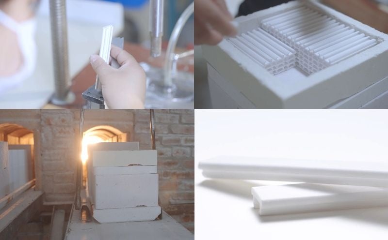実はこの純セラミック ハイブリッド ストレートアイロンのプレートは手作業で作っています。純セラミックプレートは焼成後にばらつきがでたり、強い力が加わるとひびが入りやすいなど量産には向いておらず、職人の技術がなければ完成しません。