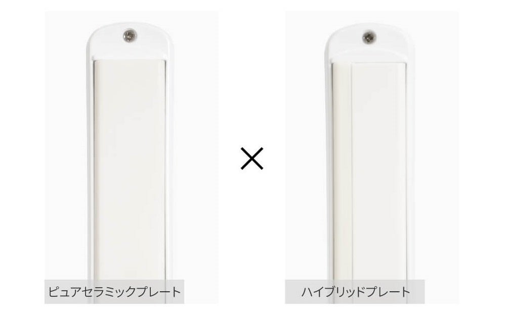 純セラミック ハイブリッド ストレートアイロンは様々なヘアアイロンを手掛けるアレティの中でも特別な1本です。その理由は異素材のプレートを合わせたアレティ独自の作りにあり、片面には純セラミック、もう片面にはシリコンをはめ込んだハイブリッドプレートを採用。