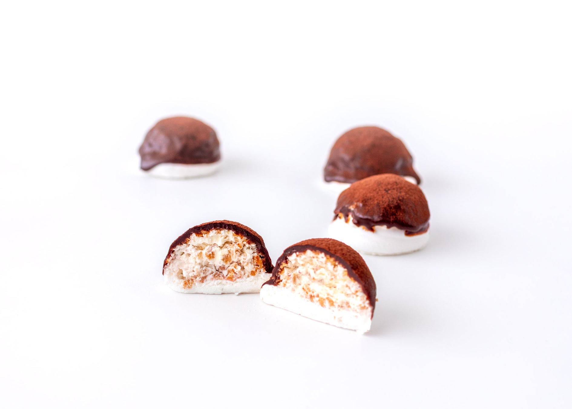 「しまかげ」は、私たちカノーブルで技術を培ったメレンゲをベースに、塩バターのコクとフィアンティーヌの香ばしさを重ね、生チョコレートで包み込んだひと粒です。さらに、メレンゲにほんのり加えたレモン果汁が、深い味わいにさっぱりとした余韻をもたらします。