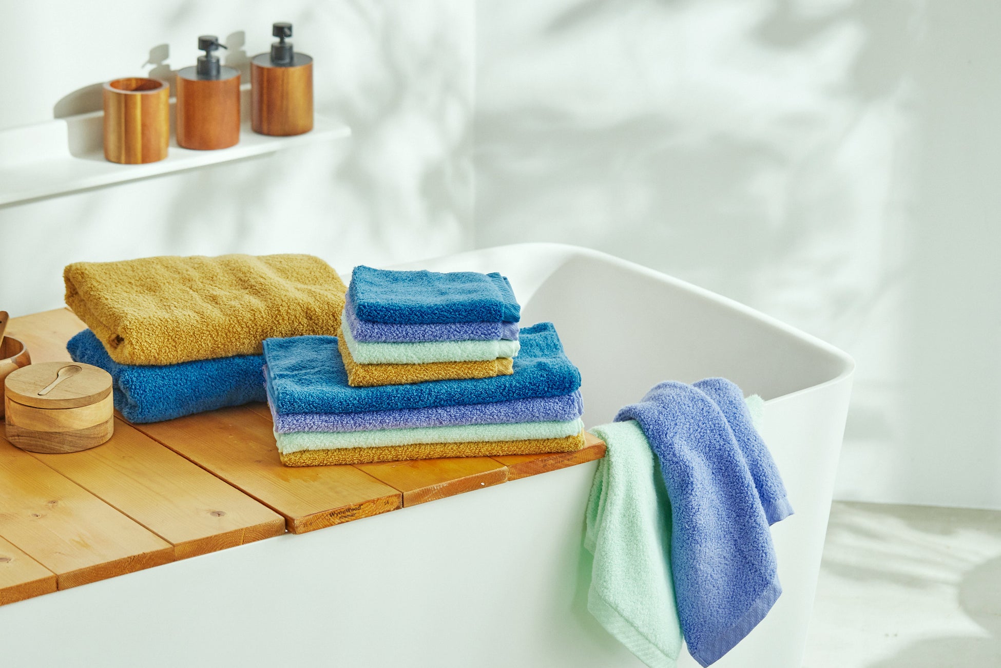 「watairo」と「暦生活」のコラボレーションアイテムのテーマは、「にっぽんの朝」です。秋の朝をイメージして厳選した日本の伝統色8色の中から、双方の公式X(旧Twitter)で人気投票を行い、人気が高かった「金碧珠(きんぺきしゅ)」、「紅掛空色(べにかけそらいろ)」、「黄朽葉(きくちば)」、「秘色(ひそく)」の4色の商品化を決定しました。タオルは、「watairo」シリーズの中から、ふっくら感がある無撚糸を使用したふんわり軽い風合いが特長の「かるわた」を使用。多様なラインナップを揃えている西川のタオルの中でも、特に柔らかさにこだわったタオルです。バスタオル、フェイスタオル、ウォッシュタオルを展開します。
