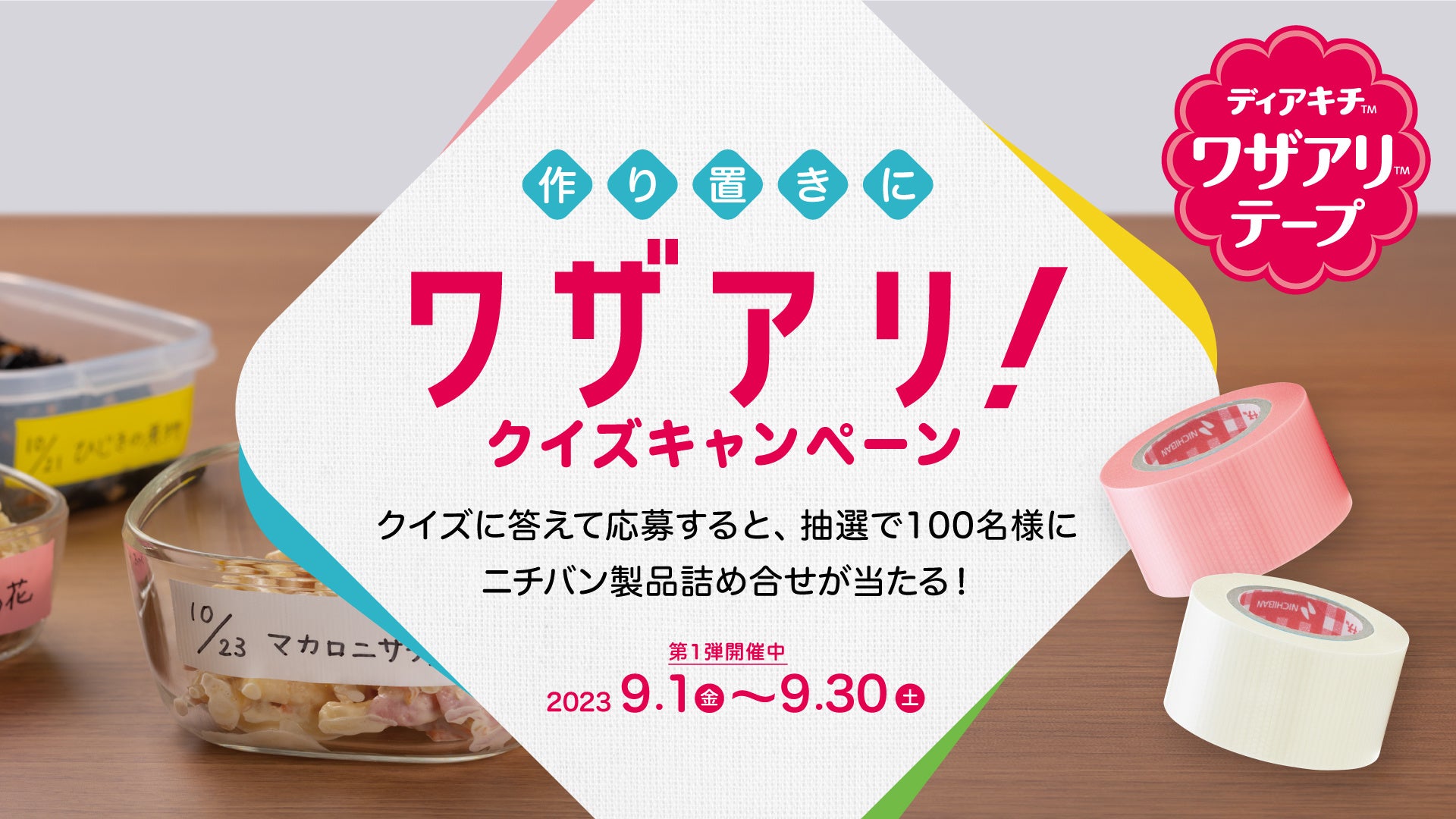 9月1日より、クイズに答えて応募すると、抽選で100名様にニチバン製品詰め合わせが当たる「作り置きにワザアリ!クイズキャンペーン」を開始します。