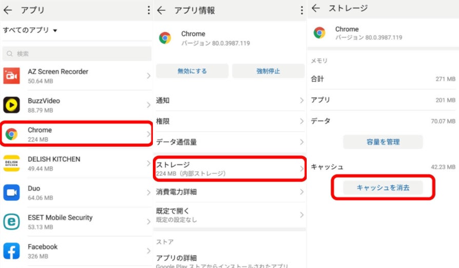 方法3、アプリごとにキャッシュを削除する(Android 8以降)