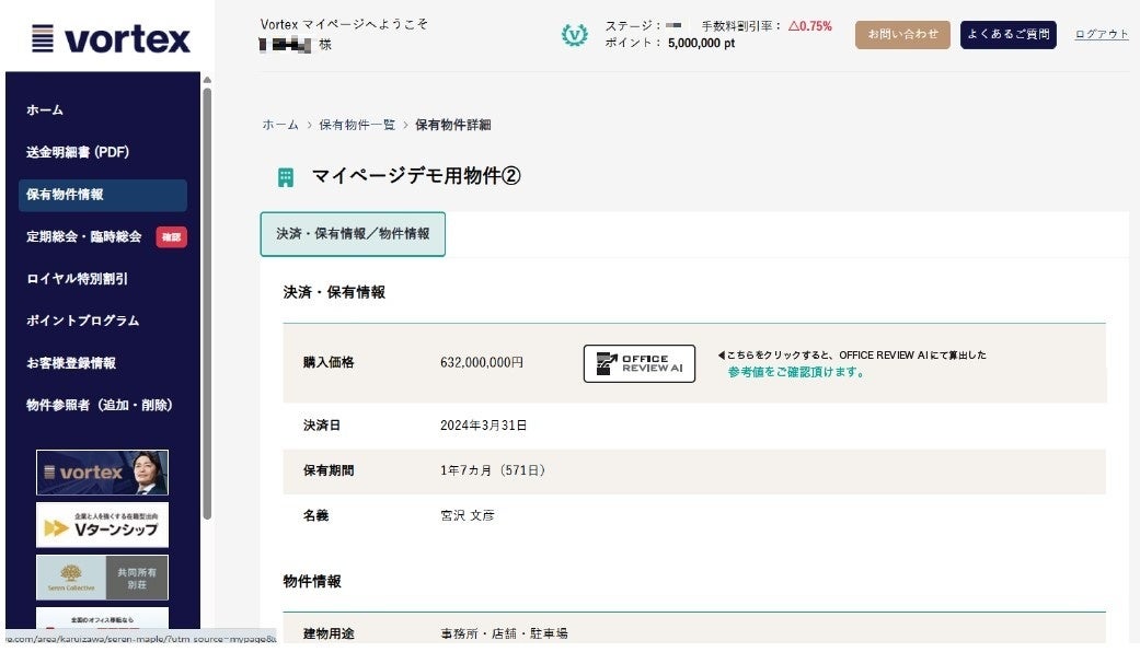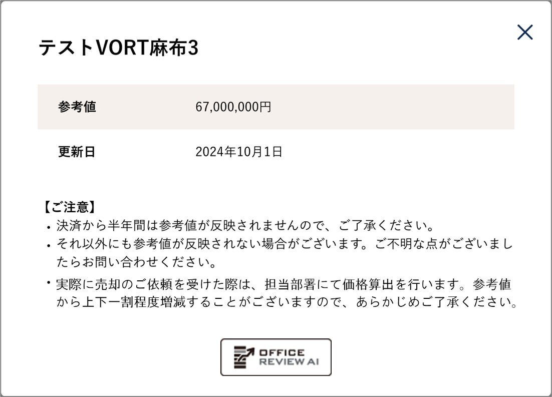 「区分所有オフィス®」を主軸に資産形成コンサルティングを行う株式会社ボルテックス(東京都千代田区 代表取締役社長 兼 CEO 宮沢 文彦、以下当社)は、AIを活用したオフィス価格査定・レビューサービス「OFFICE REVIEW AI(オフィスレビューAI)」を2025年12月中旬より、オーナー向けマイページ内において、提供開始いたします。
